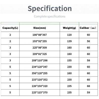 | 容量(L) | サイズ(mm) | 重量(g) | 口径(mm) |